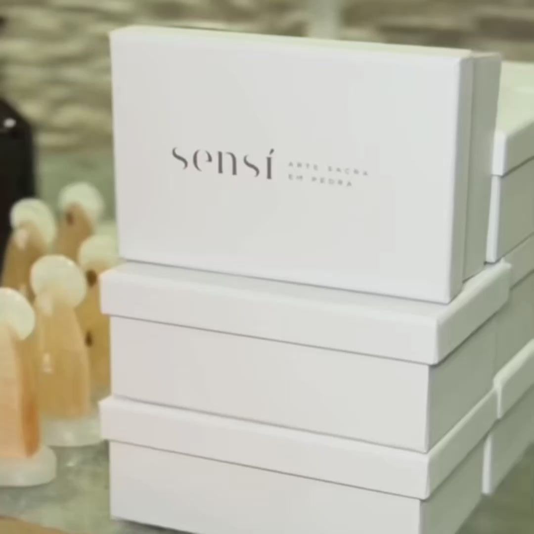 A selenita é luz em forma de pedra. Conhecida como o cristal da purificação e da clareza espiritual, ajuda a suavizar o ambiente e aquietar o coração, trazendo leveza e paz. Assim, a oração acontece com mais presença e foco, como um caminho limpo e tranquilo para elevar a fé e a devoção a Nossa Senhora.